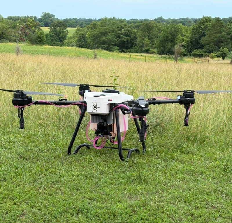 One theory for drones being an equally effective tool is that they provide more consistent boom-to-target distance. During a recent interview, Stufflebeam said, “I flew this year’s drone at a 10-foot altitude above the crop canopy, and it stayed within 2–3 feet of that height, even across hilly fields.” Rills within the field did not influence that distance. The boom did not jolt off center, and power lines or edge of field obstacles did not require adjustments. The stability may allow drones to compete with other application methods.