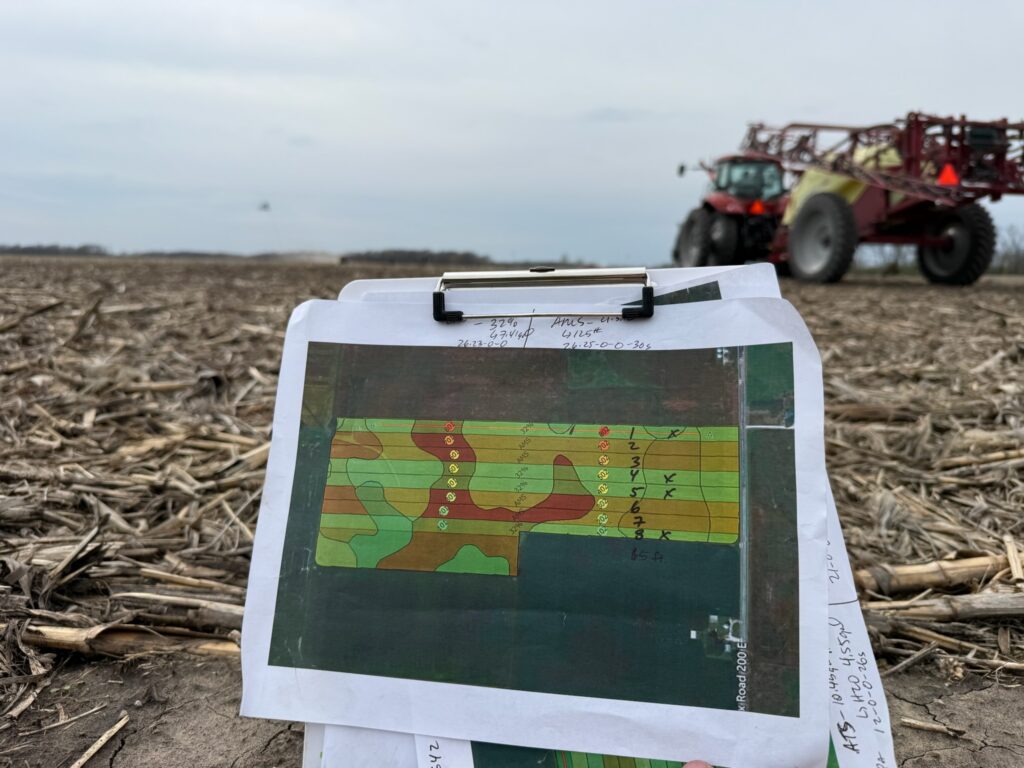 With the Sulfur 2.0 trial, in one field we are comparing ATS vs. AMS vs. untreated. In another field, we are comparing AMS vs. 32%. With these comparisons, the goal is to find what better fits the sulfur. In another field, we set up our HumiK trial, which allows organic matter to build in the soil.