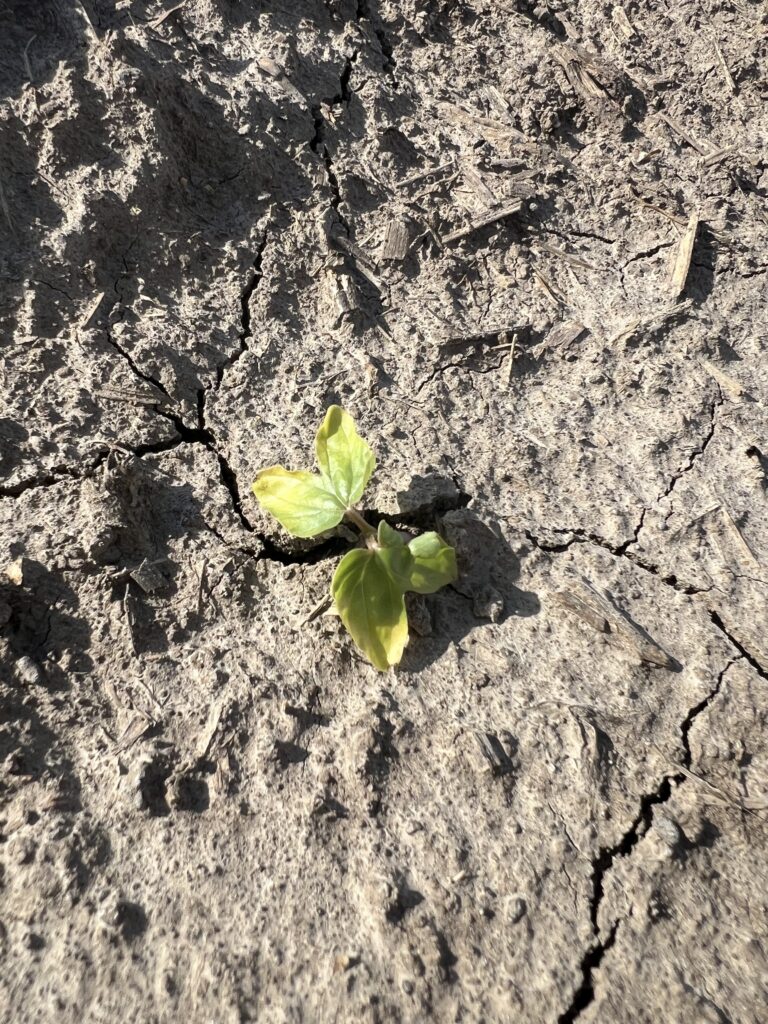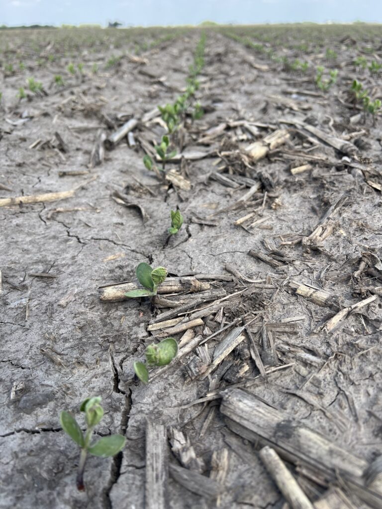 Many had just started to get back into the field after last weekend’s (about 1 inch) rain but have stopped again after today’s rain. A high percentage of fields have been planted, and you can now see around 35% soybean and corn emergence from the road. Overall, both corn and soybean stands and populations look good after last weekend’s cold snap and rain. Some fields that were planted around April 9 or 10 are struggling to emerge in fields that are crusted. One soybean field had necks that were breaking in crusted conditions, and these plants will not survive. Plant populations will need to be reevaluated in another five to seven days to see if replant is needed. Many days have been very windy and not suitable for herbicide applications. Morningglories were seen emerging while scouting soybeans.