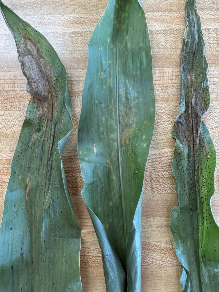 As for corn….we have seen it all!! Northern Corn Leaf Blight, Gray Leaf Spot, Tar Spot, and Southern Rust!!