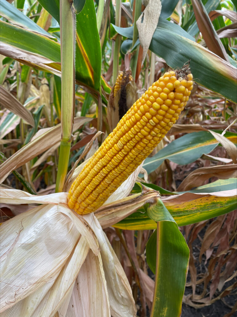 Much of the corn in the area still has some green in the leaves, but it is fading fast. Some fields have black layered already, and others are almost there. In the fields I’ve visited I have not seen much tip back on ears, which gives me hope that corn yields are going to be average to above average in the area. I’m still a bit worried about stalk quality and standability in some fields, but the ears are looking pretty good.