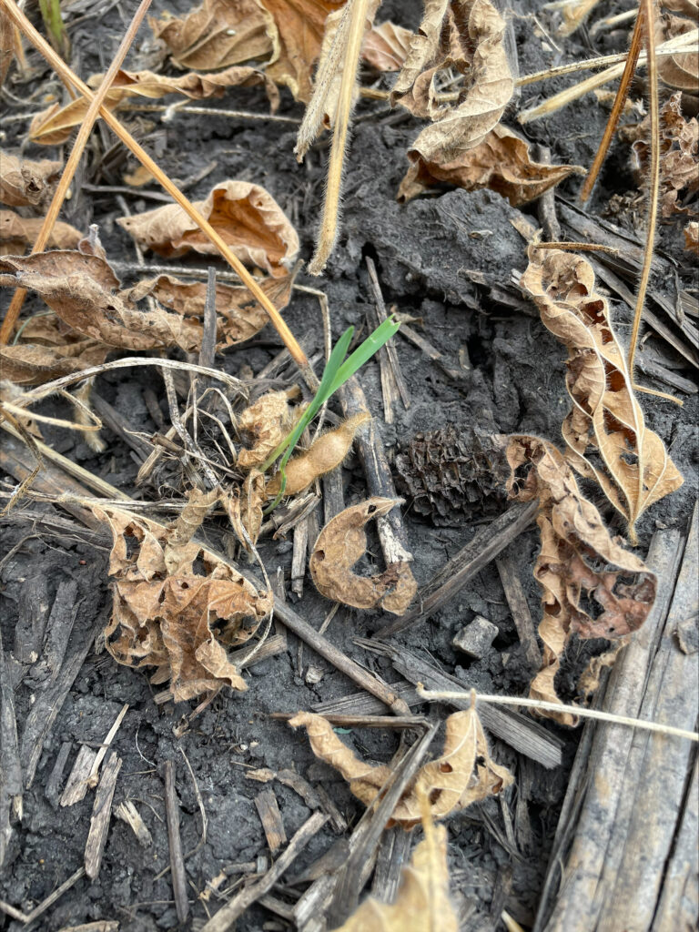 Cover crops aerial-seeded into standing soybeans 3–4 weeks ago are starting to germinate. They received some rain after application, but need more, and we’re hoping to see that over the next several days.