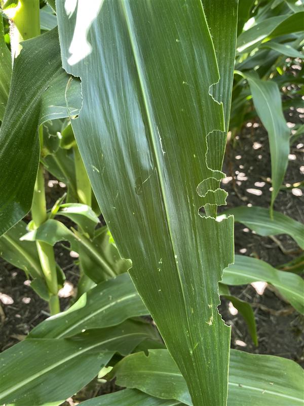 I set up sticky traps last Wednesday to monitor for corn rootworm beetles in a cornfield in McLean County, but I didn’t see any on the traps when I replaced them this Wednesday. I did see some grasshopper feeding near one of the traps.