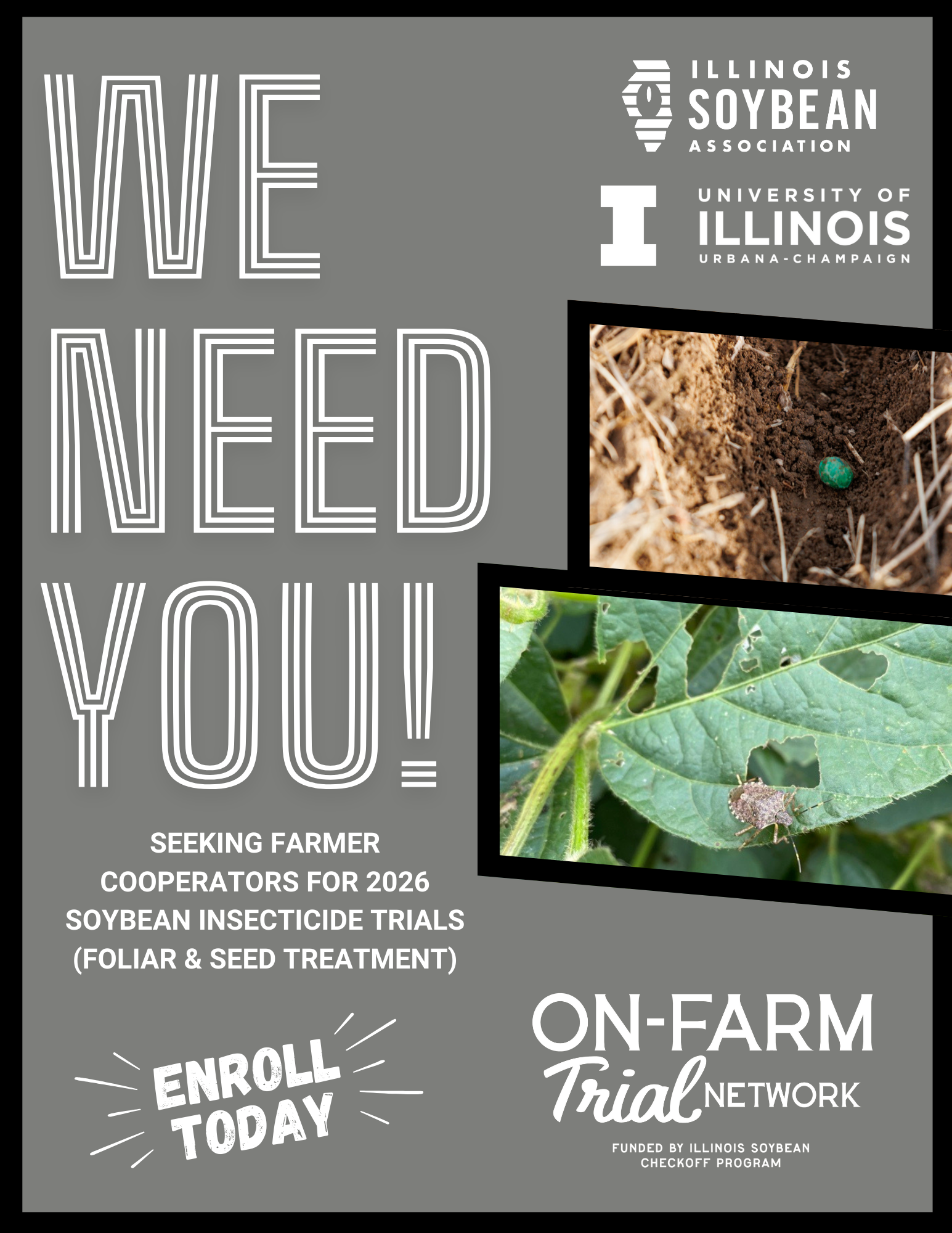 With input costs rising and insect pressure varying from year to year, it's not always clear whether insecticidal seed treatments or foliar sprays actually deliver a return. We know that insecticides can prevent yield loss, but questions remain about which pests are most detrimental, the extent of damage they cause, and which control method is most cost-effective. This Illinois Soybean Association (ISA) checkoff-funded research, led by Dr. Nick Seiter, Assistant Professor & Field Crops Entomologist at the University of Illinois Urbana-Champaign, is designed to answer these questions to determine if insecticides really pay off. To help find out, we need farmer participation!