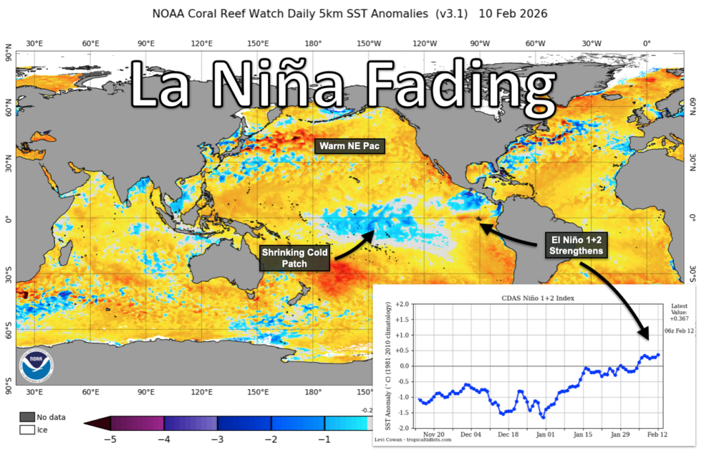 Where are we? We’re coming out of a weak La Niña in the Pacific. Cool water temperatures are fading in the tropical regions, fading quickly even, as sea surface temperatures begin to resemble more favorable analog years like 2018, 2014, and 2009. That’s only to say we’re starting out with better signs for moisture. But things can change.