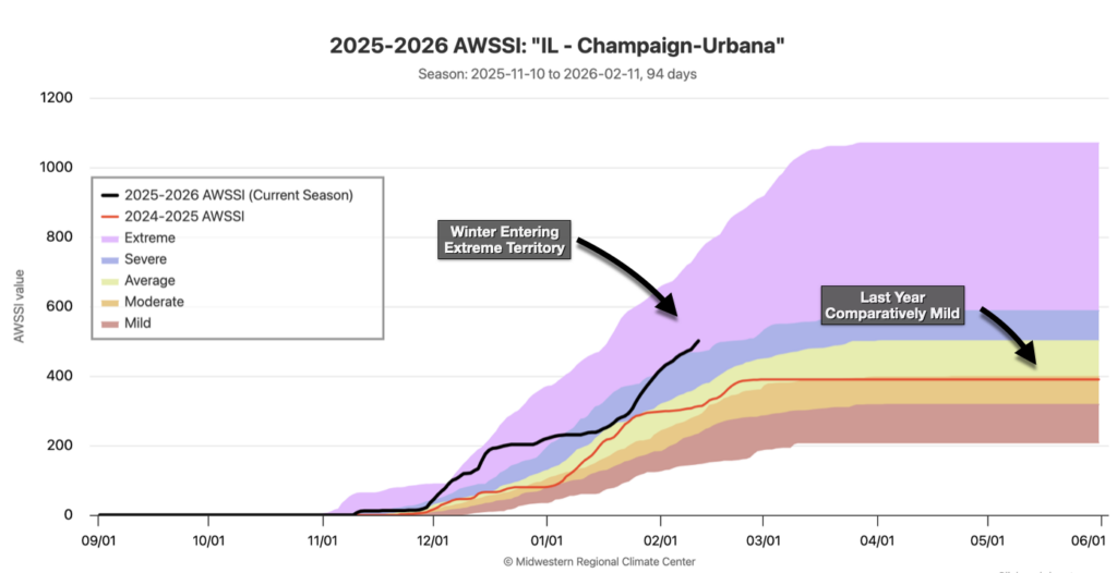 This winter also brought multiple spells of brutally cold temperatures, especially early on, along with heavy snowfall events for both downstate counties and the Chicago metro area. Many Central and Eastern Illinois cities are experiencing their harshest winter in decades.
