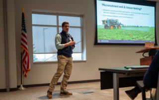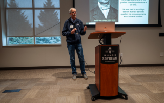 Marcos Loman presents data showing how planting timing alters the relationship between soil test values and soybean yield response.